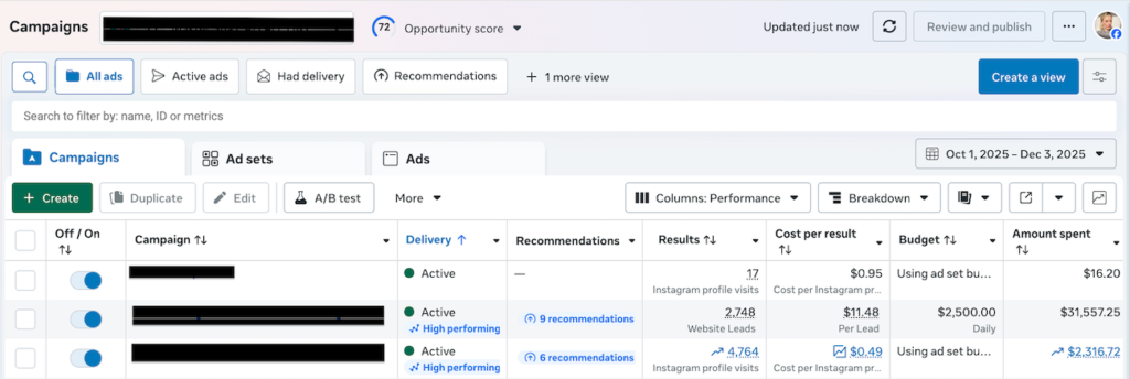 My first step was to build a full audience testing framework. I developed multiple segments including location based targeting, income tiers, real estate interests, competitor research interests, and broader lifestyle signals aligned with property buyers and sellers. I tested each segment against different placements and device types to learn where cost efficiency and quality were strongest. Once the top performing segments were identified, I consolidated spend into the highest converters to scale consistently.